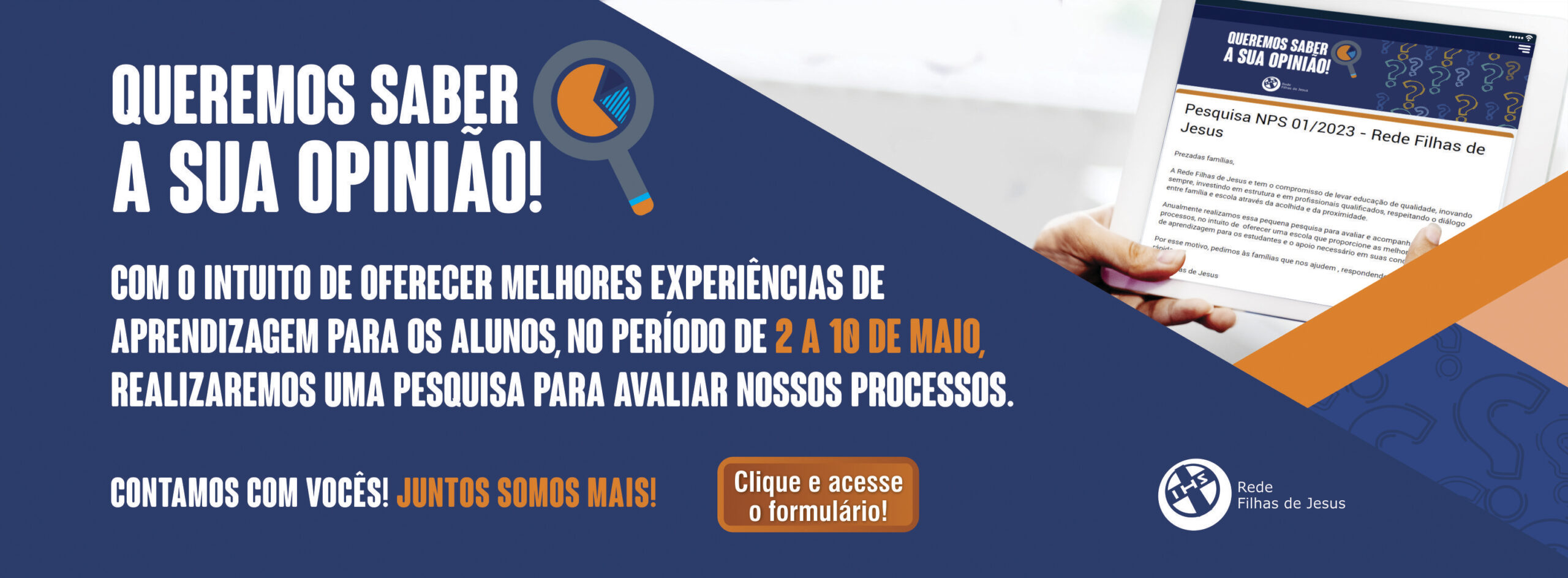 Anualmente realizamos essa pequena pesquisa para avaliar e acompanhar nossos processos, no intuito de oferecer uma escola que proporcione as melhores experiências de aprendizagem para os estudantes e o apoio necessário em suas conquistas.